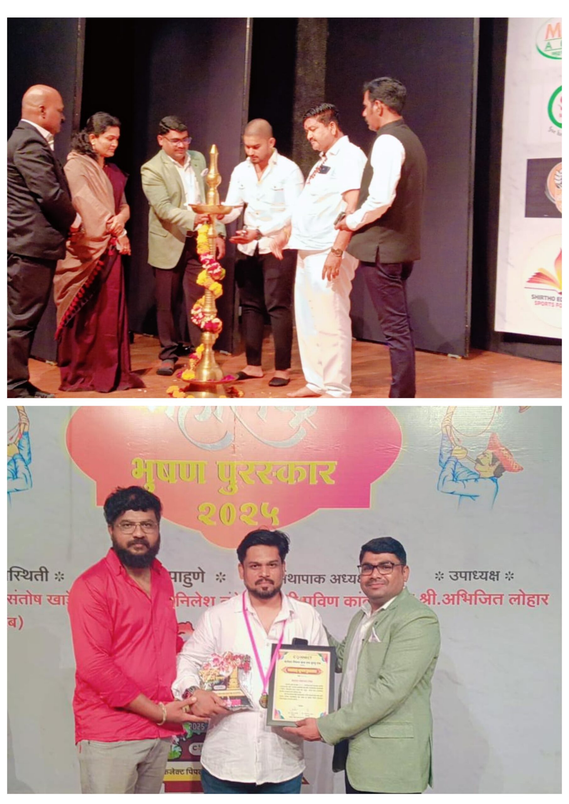 जकात फाउंडेशन नळदुर्ग व महाराष्ट्र राज्य पत्रकार संघ, मुबंई यांच्या माध्यमातून गेली 7 वर्ष धाराशिव तथा संपूर्ण महाराष्ट्रमध्ये पत्रकारिता आणि समाजसेवेत कार्यरत असून यांच्या संस्थेच्या महिला सशक्तीकरण आणि गृहउद्योग देण्याचे काम यांच्याकडून होत आहे त्याचबरोबर पत्रकारितेच्या माध्यमातून समाजतील अनेक घटनांना वाचा फोडण्याचे काम यांच्याकडून होत आहे याचं कार्याची दखल घेऊन कनेक्ट पिपल वाय एस डब्लू एफ या संस्थेचे अध्यक्ष मा. प्रवीण कांबळे व उपाध्यक्ष व यशीष सोशल वेलफेअर फाउंडेशन चे संस्थापक मा. अभिजीत लोहार यांनी अहिल्यानागर येथे यांना महाराष्ट्र भूषण पुरस्कार २०२५ देऊन सन्मानित करण्यात आले आहे.यावेळी कार्यक्रमच्या वेळी मा. खासदार निलेश लंके यांच्या सौभाग्यवती मा. राणीताई लंके व सहाय्यक पोलीस आयुक्त संतोष खाडे आदी मान्यवर उपस्थित होते.